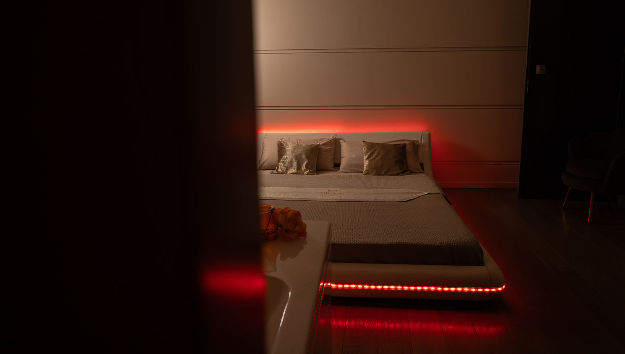 An intimate and private space where wellness becomes an experience. Our private suite welcomes couples in a refined and peaceful atmosphere, enhanced by a whirlpool tub, sensory shower, and double bed, for moments of deep relaxation and shared pleasure. A place designed to slow down, let go, and rediscover the value of time together.